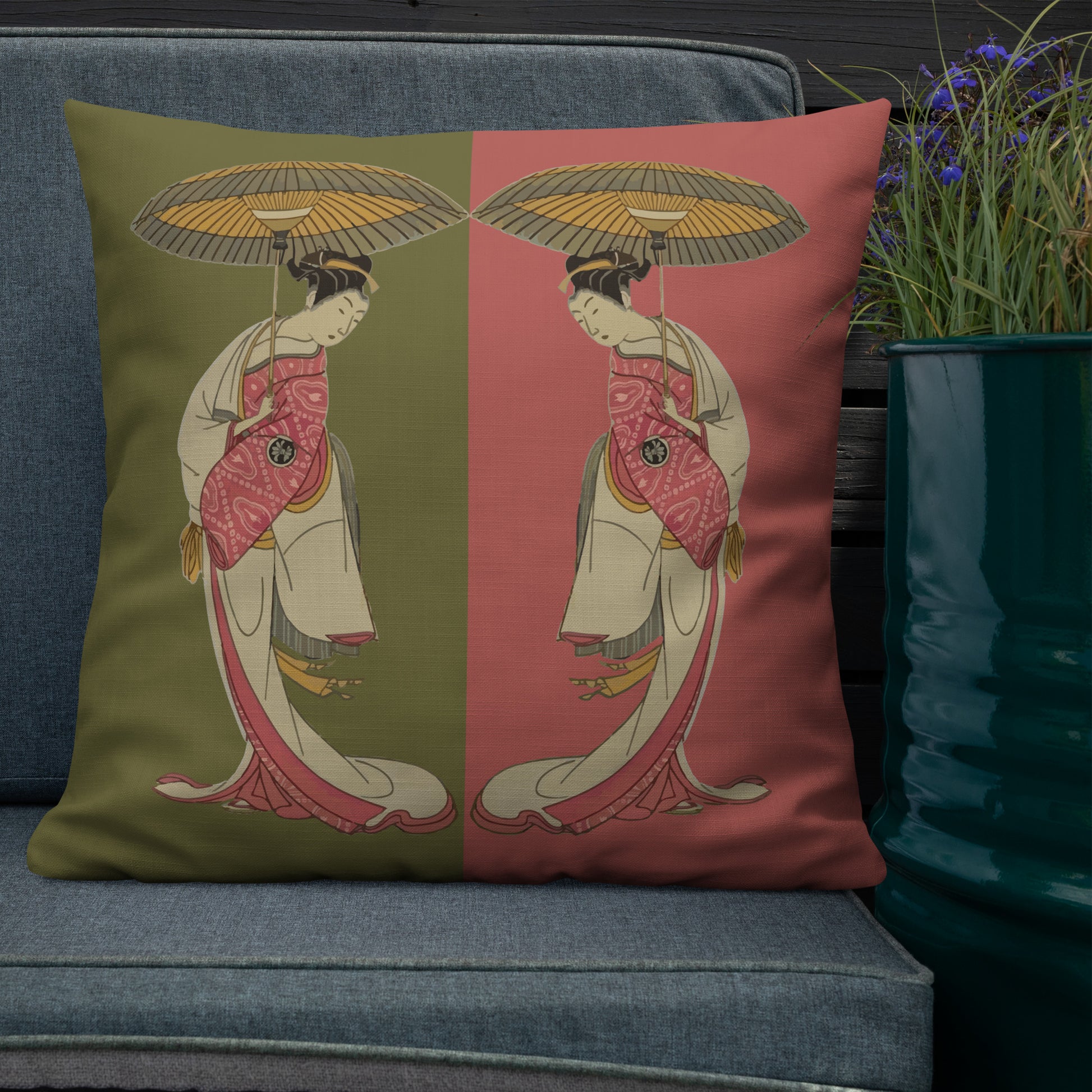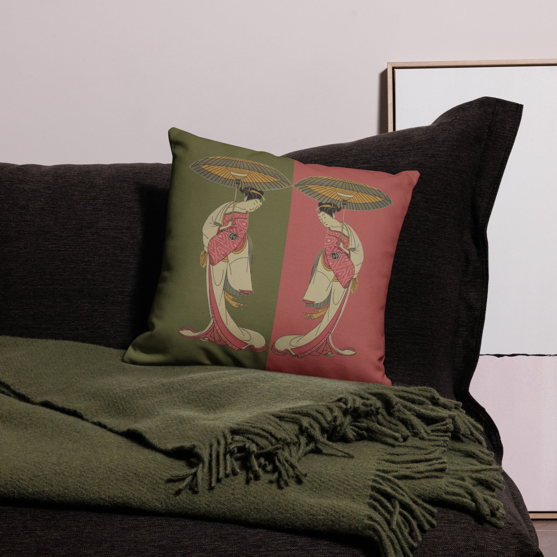 Japanese art cushion, Geisha pillow, traditional Japanese decor, oriental throw pillow, umbrella artwork cushion cover
